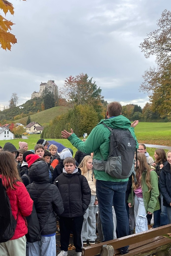 Während einer Führung durch die Burg erfuhren die Schülerinnen und Schüler viel über das Alltagsleben der Ritter, den Aufbau der Burganlage und historische Ereignisse. Ein besonderes Highlight war der Aufstieg zur Aussichtsplattform, von der sich aus ein gigantischer Blick auf den Bodensee und die Alpen bot.