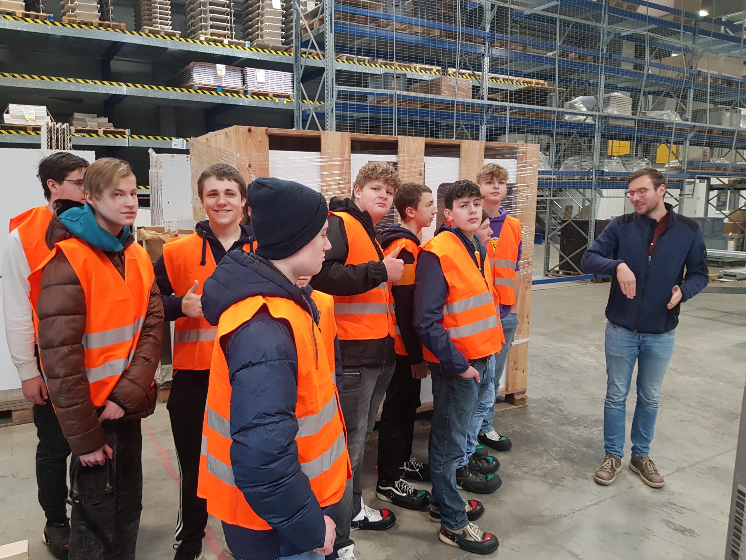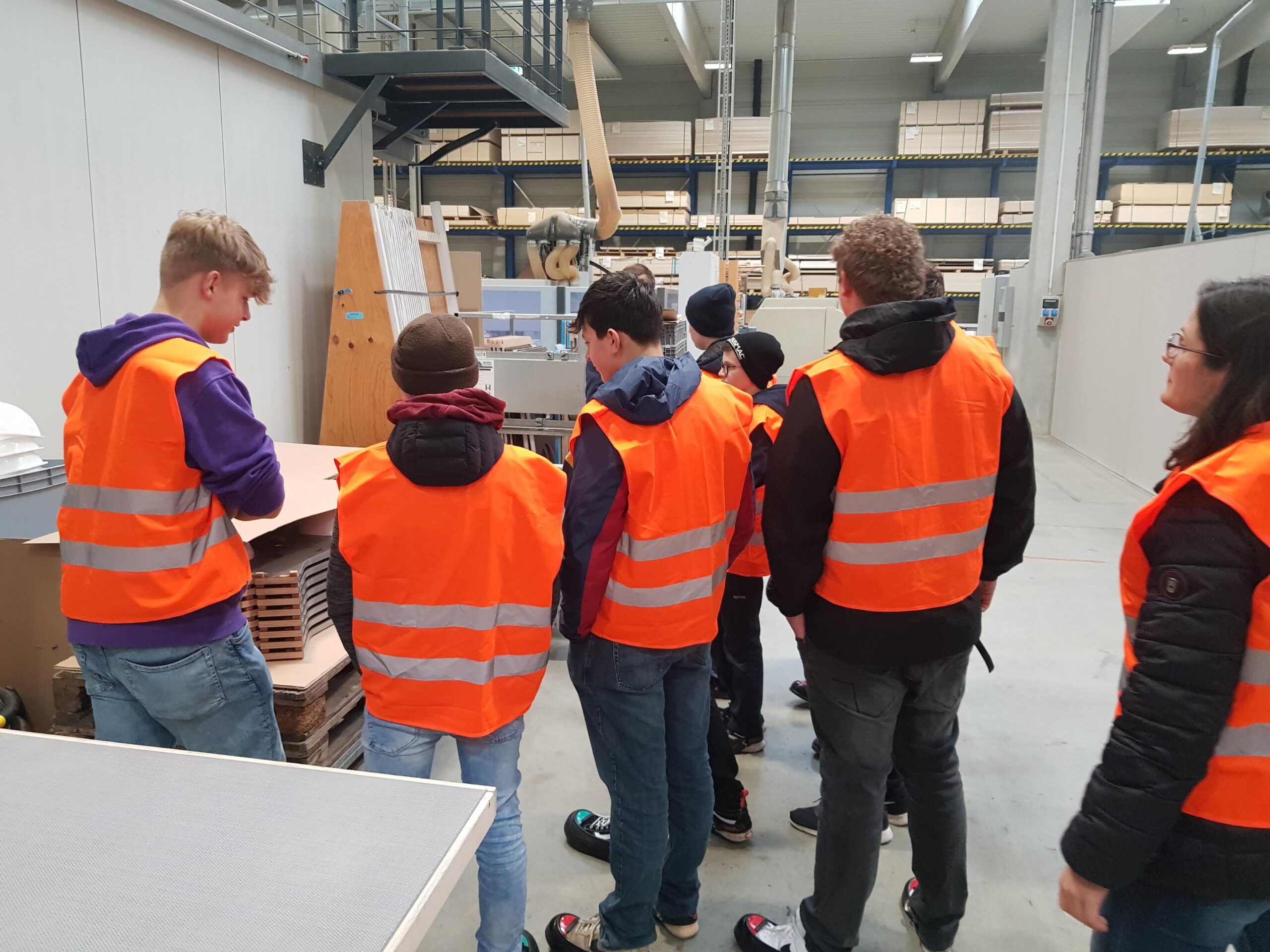 Im Rahmen unserer Berufsorientierung hatten die Technikgruppen der neunten Klassen die Möglichkeit die Fa. Stengele Holz- und Kunststofftechnik GmbH in ihrem Neubau in Zaisenhofen zu besuchen. Neben den Möglichkeiten die sich in der Ausbildung in der Firma bieten – wichtiges Ziel ist für den eigenen Betrieb auszubilden und den jungen FacharbeiterInnen Perspektiven im Betrieb zu bieten – wurde natürlich das gesamte Areal begutachtet mit Arbeitsorganisation, optimierten Arbeitsprozesse, hochmodernen Maschinen.