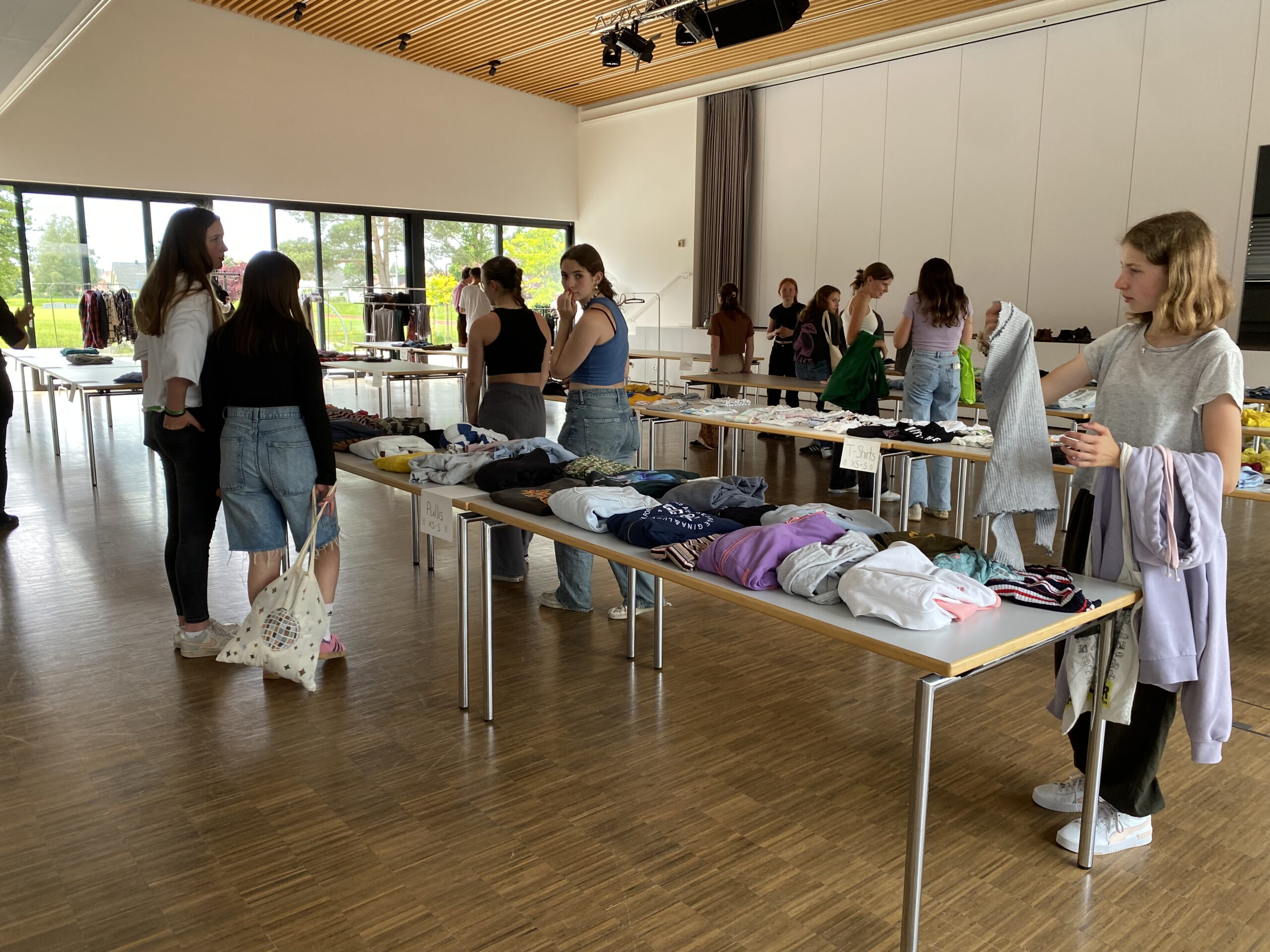 Die Idee entstand aus einer Projektarbeit im Religionsunterricht bei Frau Martina Reischmann zum Thema Engagement. Um dem Fast Fashion Trend entgegenzuwirken, wurde zu einem Kleidertausch eingeladen, bei dem jeder seine aussortierte, gut erhaltene Kleidung abgeben und andere Kleidungsstücke wieder mitnehmen konnte. Die übriggebliebene Kleidung wurde dem Kißlegger Kleiderladen gespendet. Gegen Spenden gab es Eistee, Kaffee, Sandwiches und Muffins, unterstützt durch foodsharing Kißlegg. Außerdem konnte man sich mit gerettetem Obst leckere Smoothies mit dem Smoothie-Bike mixen. Die gesamte Aktion war durch die Getränke- und Lebensmittelspenden komplett kostenfrei und nachhaltig.