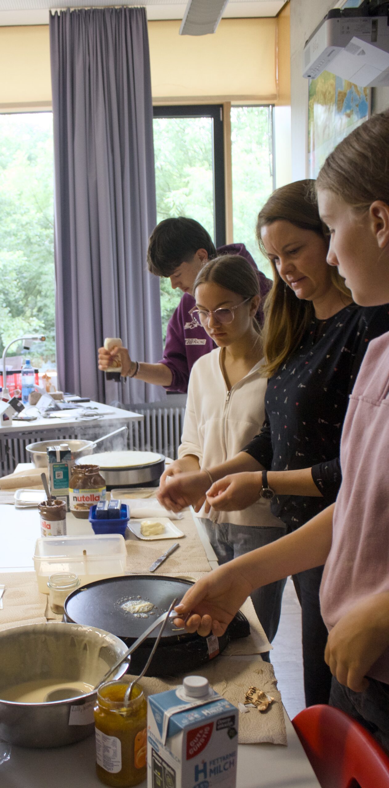 Ein fester Bestandteil unseres Schulprogramms ist die jährliche Studienfahrt der 10. Klassen nach Berlin. Die Hauptstadt bietet ideale Voraussetzungen, um Unterrichtsinhalte lebendig werden zu lassen und wichtige gesellschaftliche Themen direkt zu erleben. Während der Woche besuchen wir bedeutende Erinnerungsorte und Museen, etwa das Denkmal für die ermordeten Juden Europas oder die Gedenkstätte Hohenschönhausen, radeln entlang der Berliner Mauer und informieren uns über die deutsche Teilung. Ein Besuch im Bundestag mit Gespräch eines Abgeordneten macht politische Strukturen anschaulich. Auch kulturell hat Berlin viel zu bieten: Stadtrundgänge, Theater- und Museumsbesuche sowie ein Highlight im Friedrichstadtpalast runden das Programm ab. Die Studienfahrt fördert nicht nur Wissen, sondern auch das soziale Miteinander und ist für viele Schülerinnen und Schüler ein prägender Höhepunkt ihrer Schulzeit.