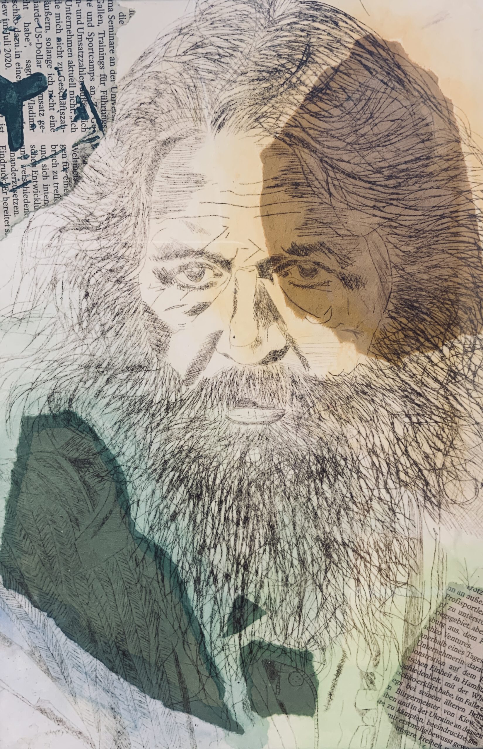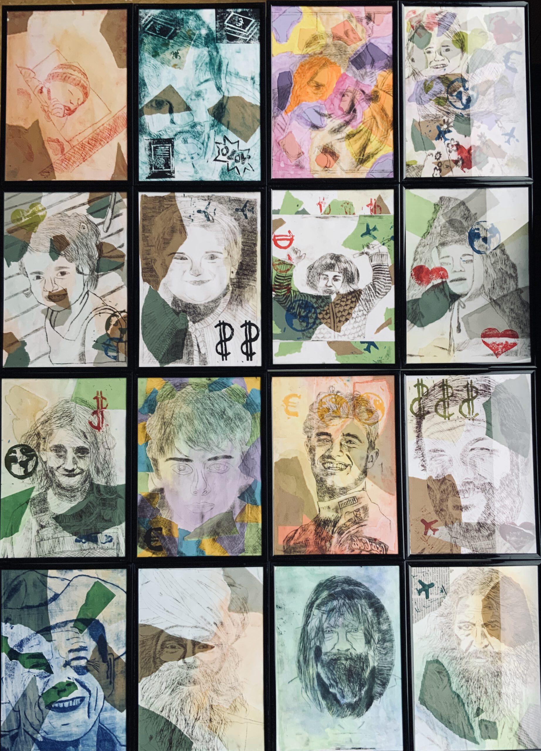 Dabei hat jeder der SchülerInnen ein Portrait als Radierung erstellt und auf eine Collage gedruckt. Wir haben gemeinsam 20 Schülerarbeiten ausgesucht, die wir zur Ausstellung eingereicht haben.